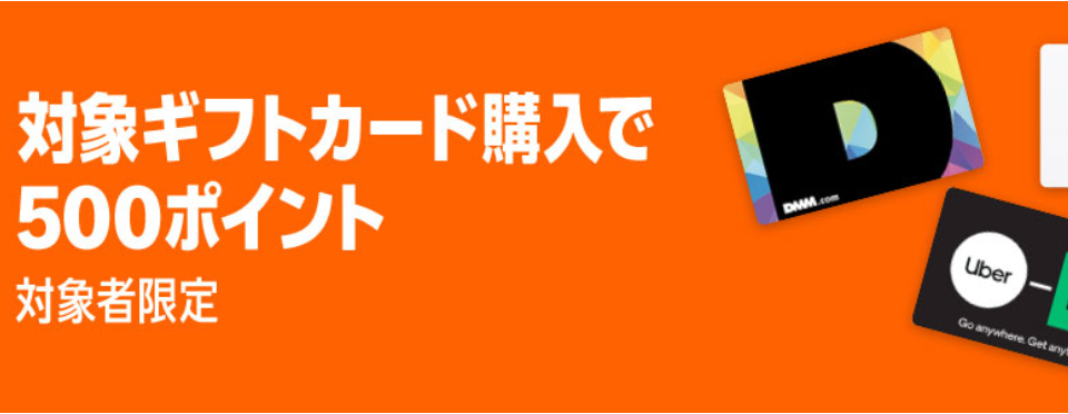 Amazonで対象のギフトカードを購入すると500ポイントプレゼントキャンペーンを実施しています。