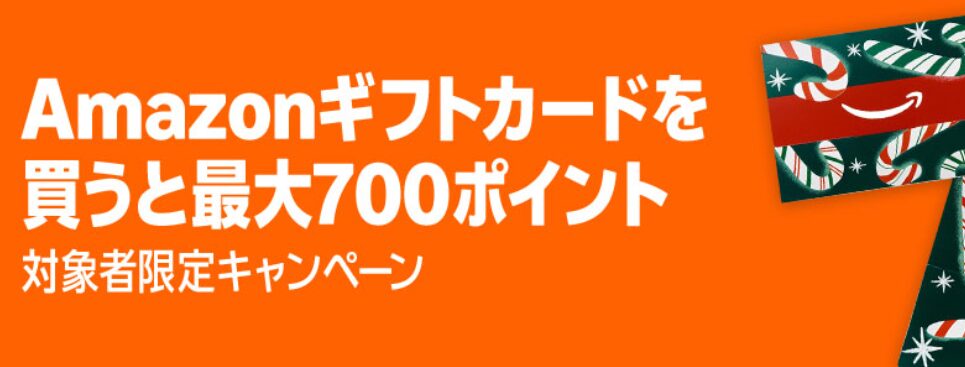 | キャンペーン | ブラックフライデー Amazonギフトカードを買うと最大700ポイントプレゼント |