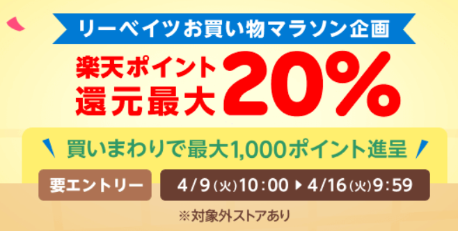 4/9~楽天リーベイツの買いまわりキャンペーンが開催されます。
