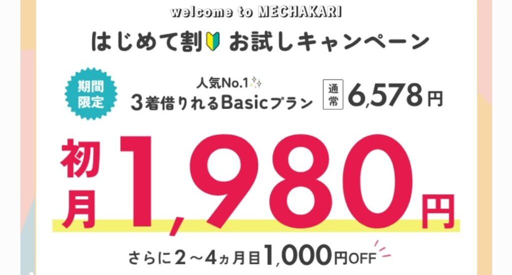メチャカリが初めての方は初月1,980円でお試しできます。