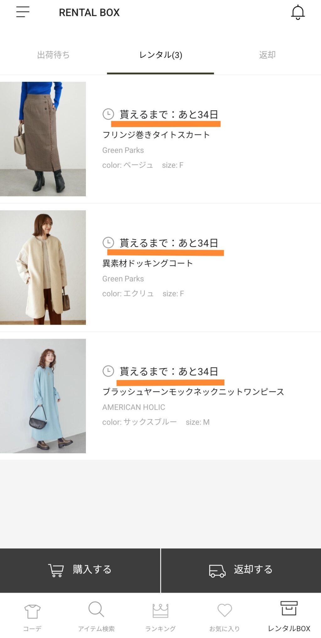 メチャカリの服は、60日間レンタルし続けてもらってもいいし、返してもいい。